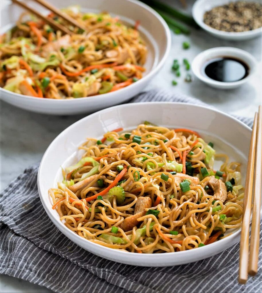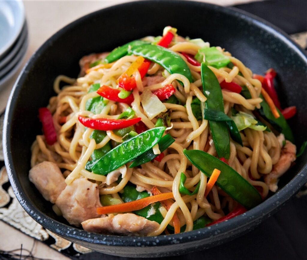Noodles or Chow Mein is one of the forms of an authentic dish called, in Mandarin, “ch’ao mien”, or “stir-fried noodles”. The authentic dish is prepared by frying boiled noodles with a few bits of meat and vegetables. Those crisp noodles served in this country are not found in China. Literal meaning. “Stir-fried noodles”. Chow Mein is Chinese stir-fried noodles with vegetables and sometimes meat or tofu. Although food historians can’t really agree on who made the first chow Mein and when, this stir-fry dish, whose name comes from the Mandarin chǎomiàn and Taishanese chāu-mèing (lit. fried noodles) had probably originated in Northern China. Chow Mein is one of the all-time favourite dishes popular throughout the Chinese diaspora and appears on the menus of most Chinese restaurants abroad. It is particularly popular in India, Nepal, the UK, and the US.