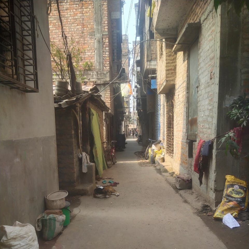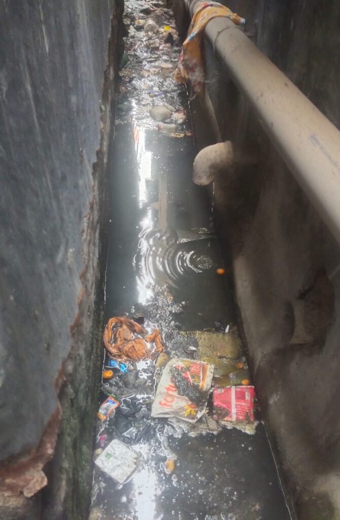 Walking through the narrow lanes of Sukantapally, one can see the stretch of houses, some built of exposed bricks, others covered with broken asbestos sheets. Clogged with wastes- both household garbage and sewage, the unclean and uncovered drains form a common sight throughout the settlement.