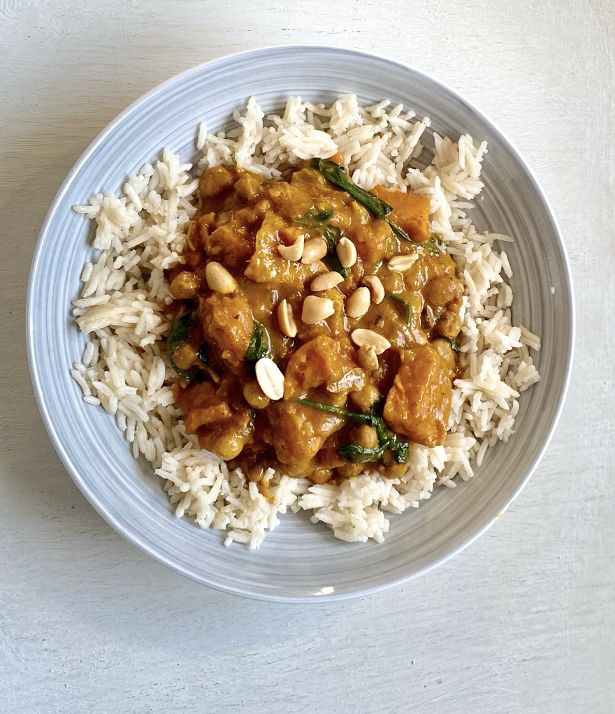 Recipe-2] CURRIED MOCK MEAT WITH NUTS AND RICE