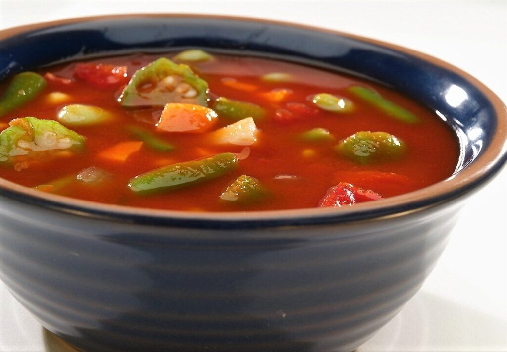 | Okra/ladyfingers- 150 gms cut into pieces Olive oil/ oil- 2 tsp Garlic- 1 tsp chop Onion- 1 small chop Carrot- 2 inch. piece cubes Potato/sweet potato- 1 small cubes Capsicum- ½ cubes Green peas-1/4 cup boiled Tomato puree- 1 cup fresh/tin Salt and black pepper to taste Paneer/tofu- 50 gms cubes Parsley/basil/coriander leaves- 2 tbsp. Water/veg stock- 2-3 cups | 1. Prepare the ingredients for the soup. 2. Heat oil, saute garlic, onion add in the tough vegetables initially add seasonings, puree, herbs and chilli flakes/spices as desired. 3. Add in the veg stock/water and bring to a boil, simmer for 10 mins, add in the capsicums, ladyfingers and continue cooking for 10-12 mins more. 4. Serve hot, garnished with fresh coriander/basil leaves. |