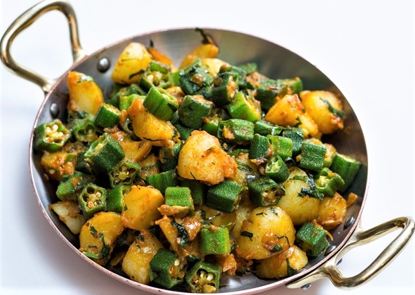 | Bhindi- 200gms cut into medium pieces Potato- 150gms cut into cubes. Oil/ghee- 2 tbsp. Hing- 1 pinch Jeera- 1 tsp Curry leaves- 6- 8 no Slit green chillies- 2-3 Onion- 1 large chop Roasted crushed saunf- 1 tsp Chaat masala- ½ tsp/aamchur powder- ½ tsp Lime juice- 1 tsp Coriander leaves- 1 tbsp. chop | 1. Prepare the bhindi and aloo cut into pieces. 2. Heat oil or ghee in a pan, add in the hing and all the ingredients one by one, saute onions till light pink. 3. Add in the aloo and bhindi and mix well, cover and simmer for 6-8 mins. 4. Now add in the masalas, saunf and salt to taste, mix well, and cook for another 4-6 mins until well done. 5. Finally, add in the aamchur/lime juice and coriander leaves and serve hot with phulkas, rotis. |